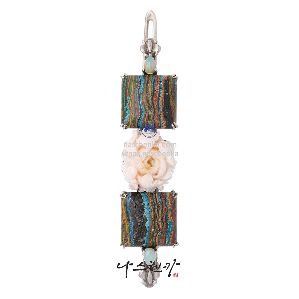 [나스첸카] 한복에도 꽂아주는 라인업 _ 나스첸카 산호 레인보우 켈실리카 은 원석 헤어핀 머리핀