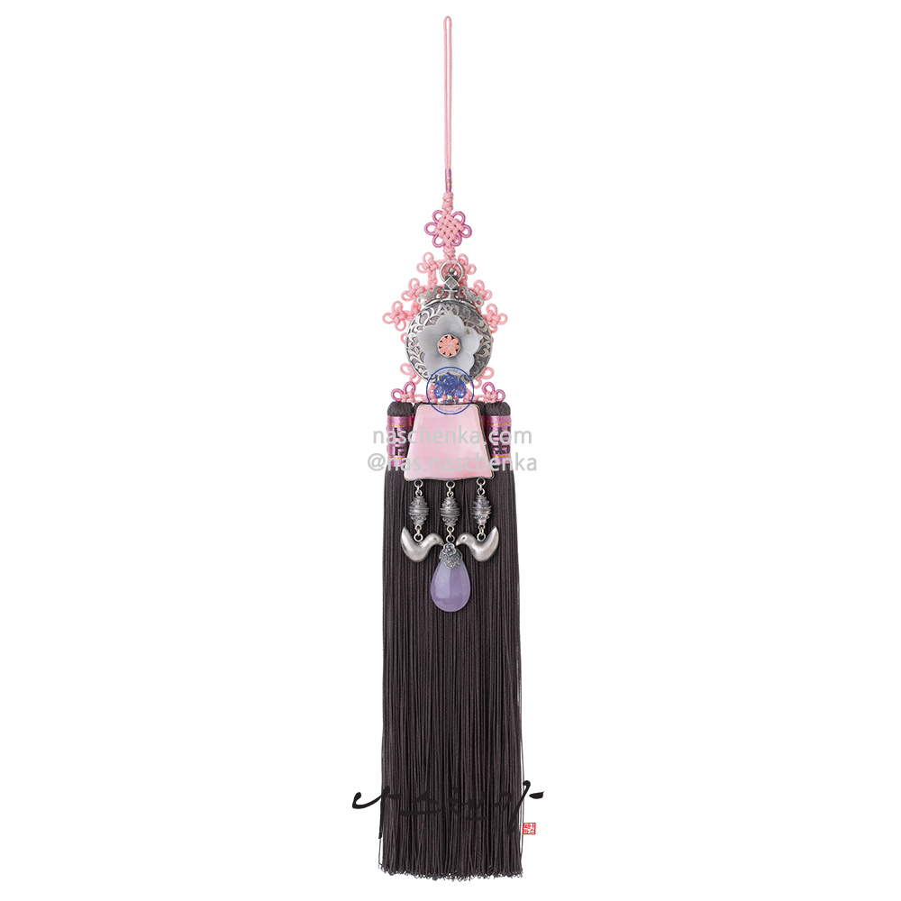 ✔ 핑크 명주실 견사 와 전통 매듭과 깊이 있는 그레이 술의 조화