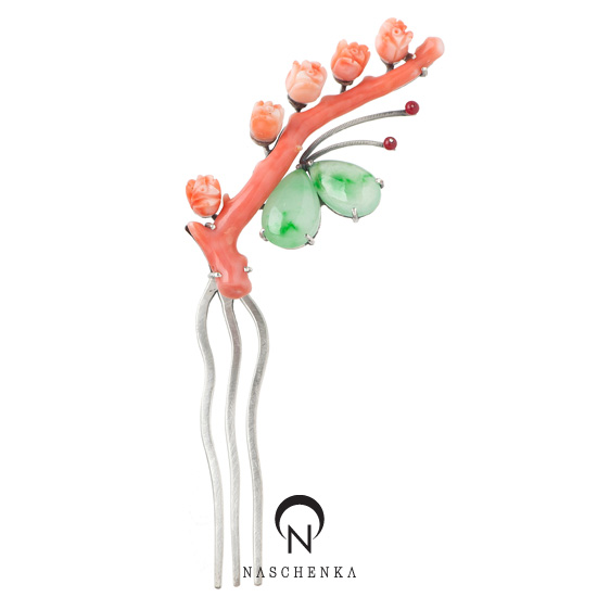 [나스첸카] 나긋나긋 [실버 수공예 산호 비취 뒤꽂이]