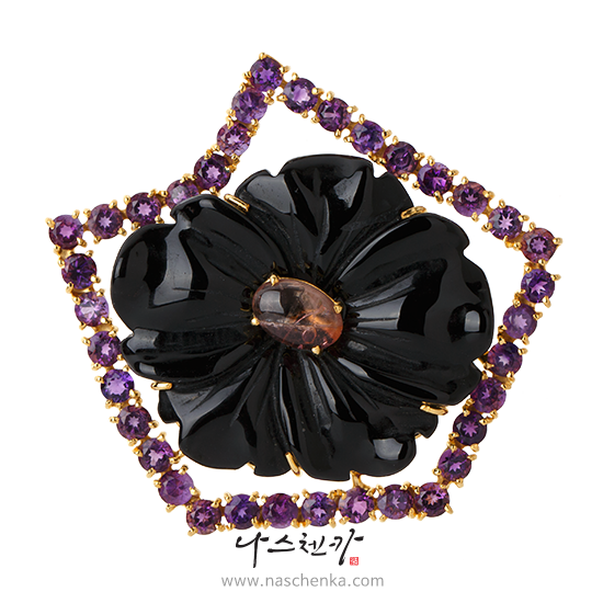 [나스첸카] 블랙 키스 _ 오닉스 자수정 브로치