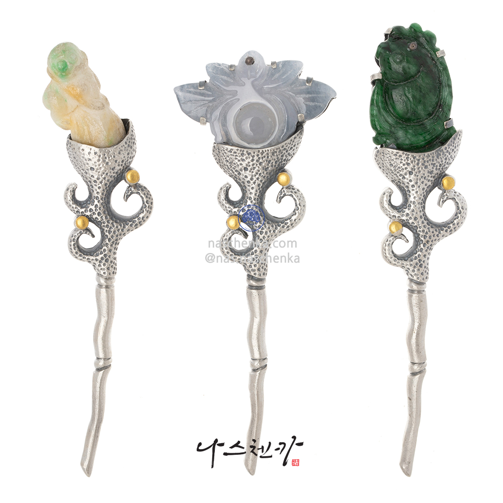나스첸카 삼작 비취 은 뒤꽂이는 한국 전통과