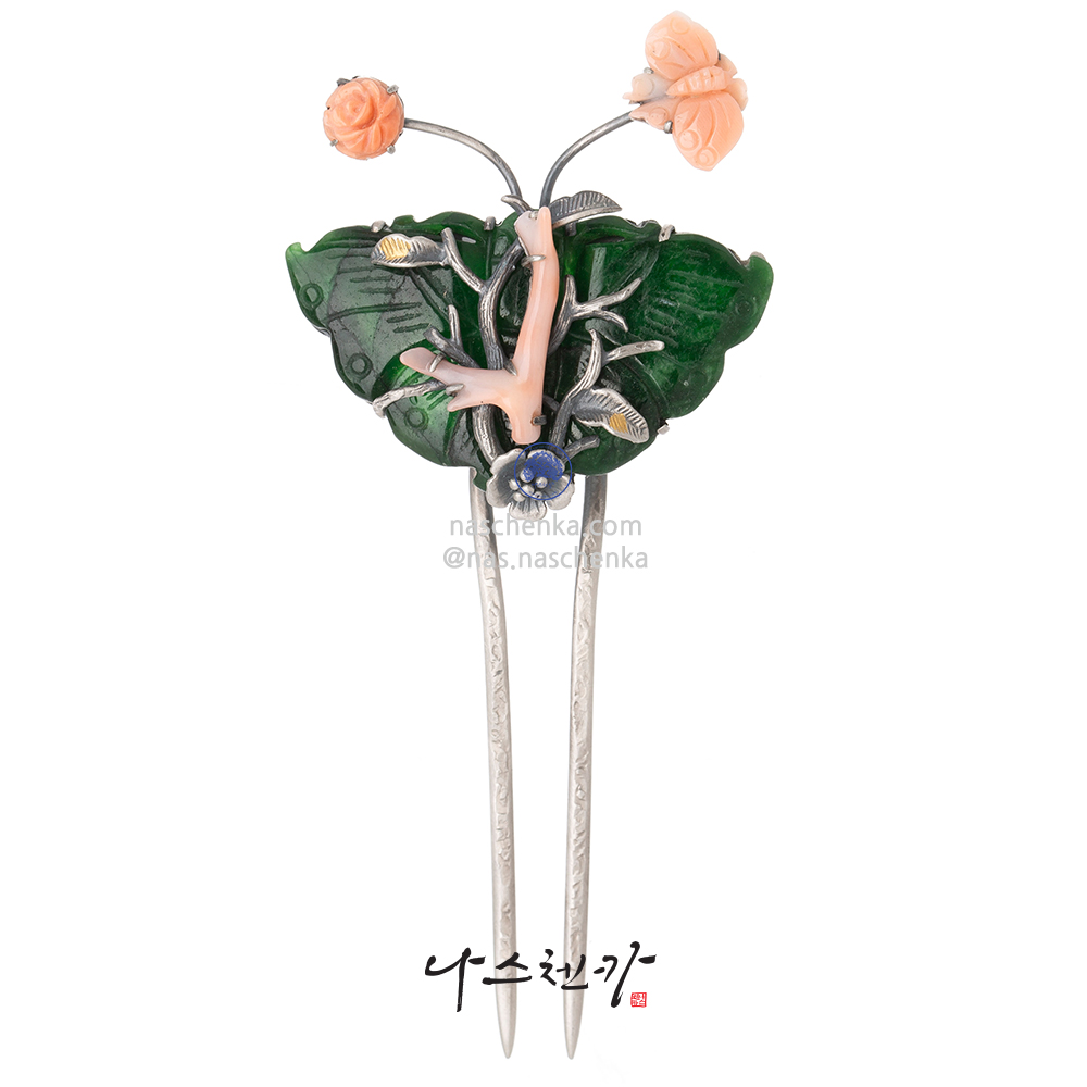 [나스첸카] 담장너머 핑크 산호 피어오르다 _ 산호 비취 옥 은 뒤꽂이