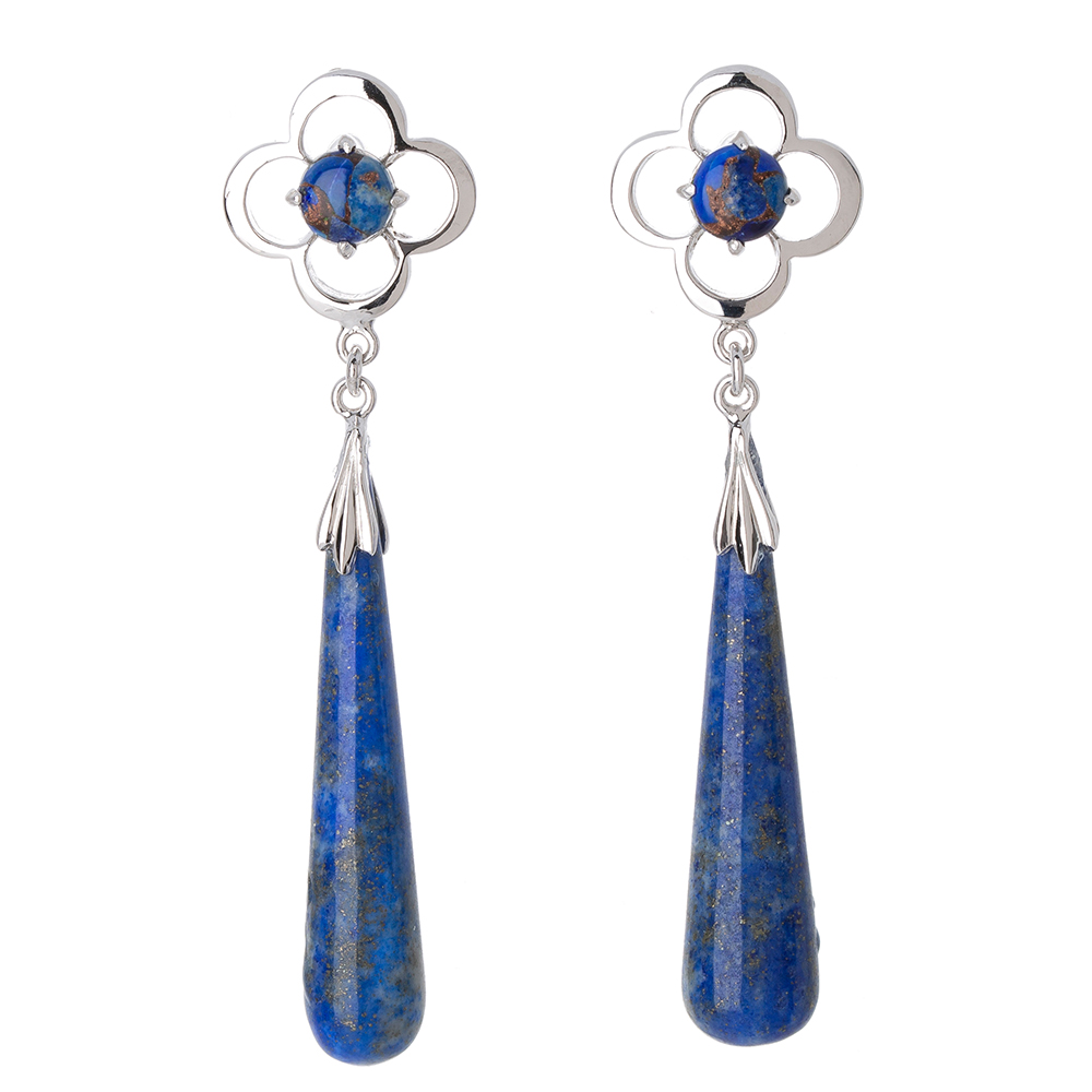 드롭형 청금석, 은, *은 세공 후 도금. 14K 뒷침
