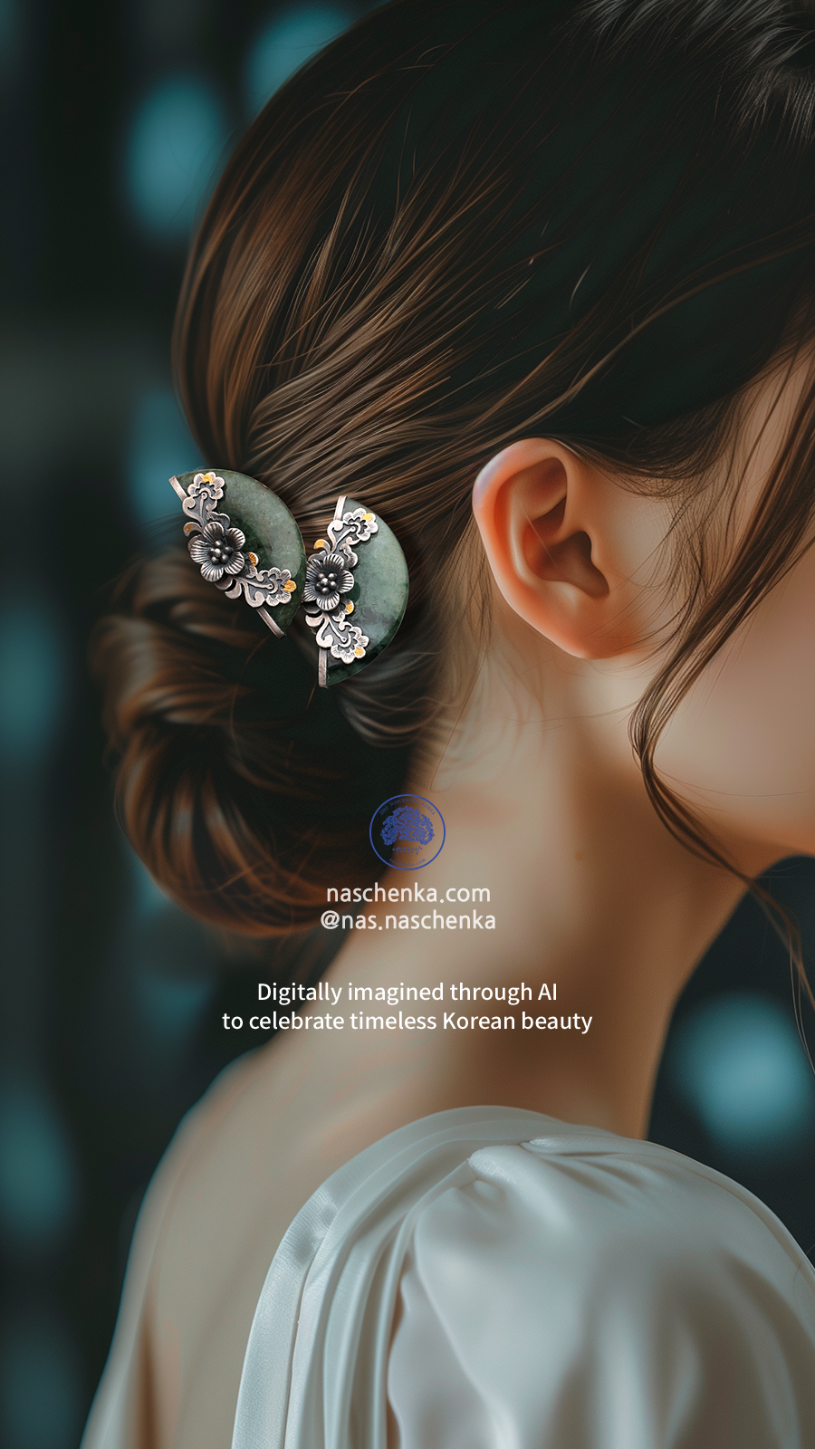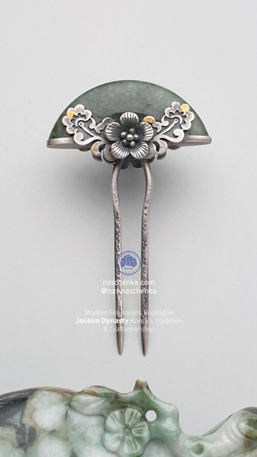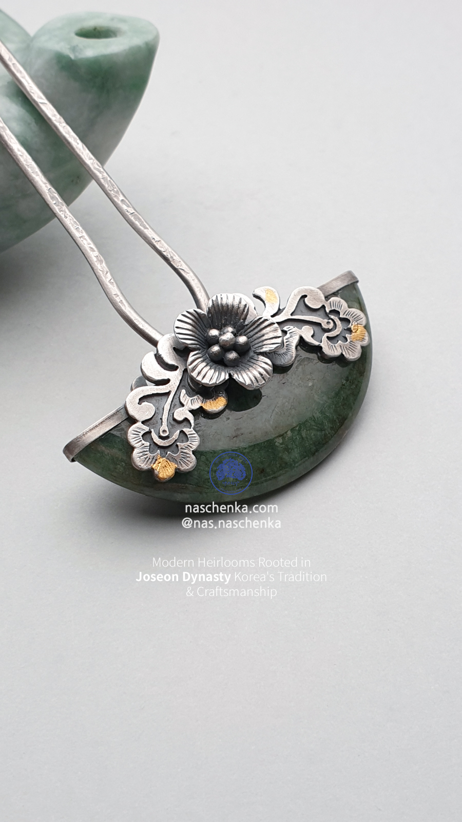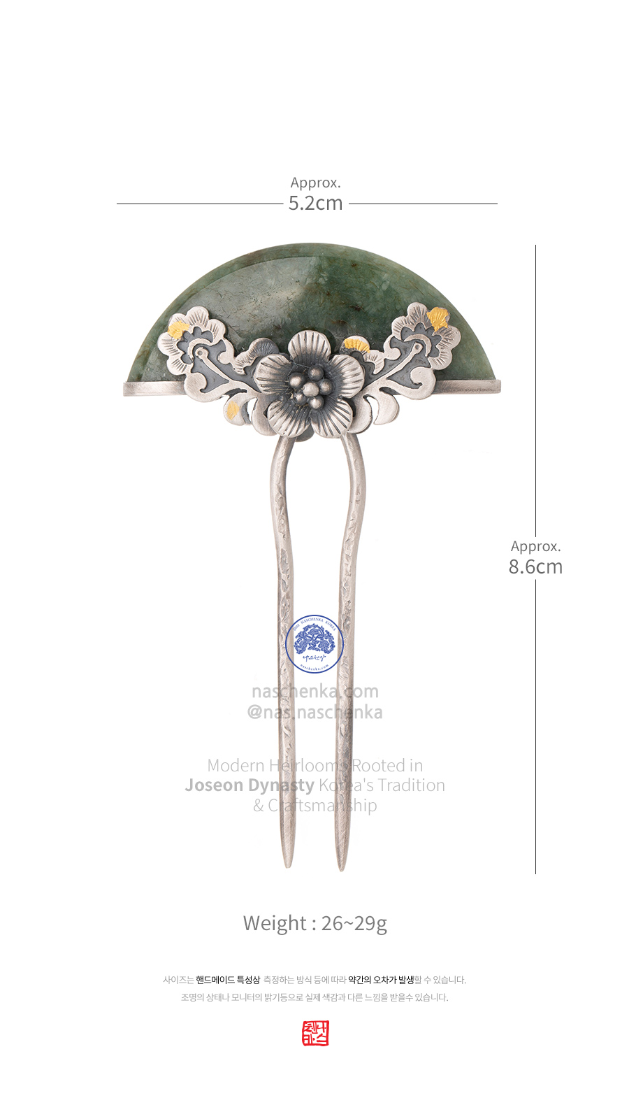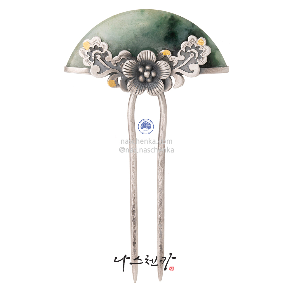[나스첸카] 변신 _ 한복 비취 뒤꽂이 _ 앞뒤로 양면 은 뒤꽂이