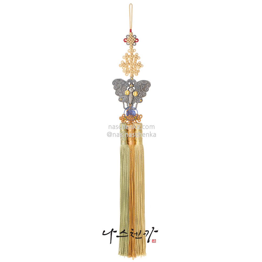 [나스첸카] 인왕산을 품은 나비 _ 나비 노리개_ 전통 은 순금 금부기법 마무리 명주 노리개