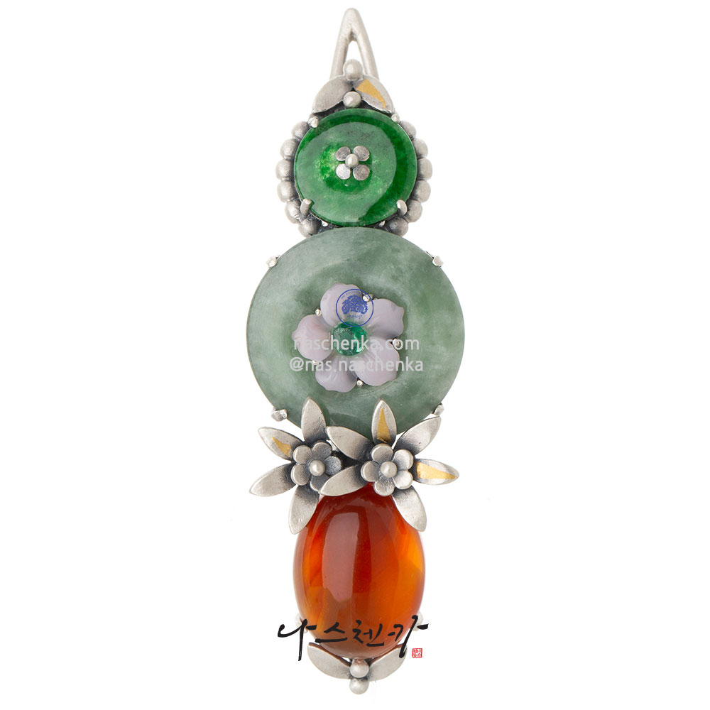 [나스첸카] 애기씨 머리핀 _ 자마노 비취 은 명품 헤어핀