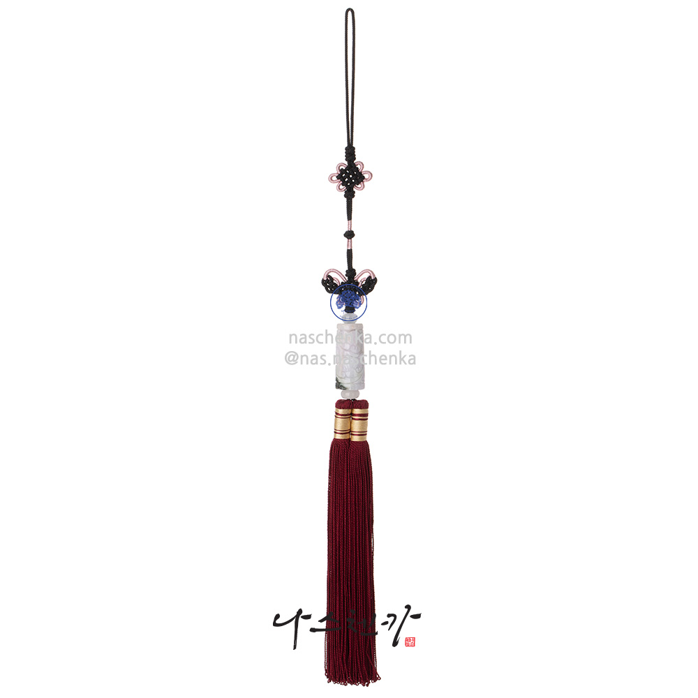 [나스첸카] 원통형 라벤더 비취 나비 매듭과 국화매듭 명주 노리개