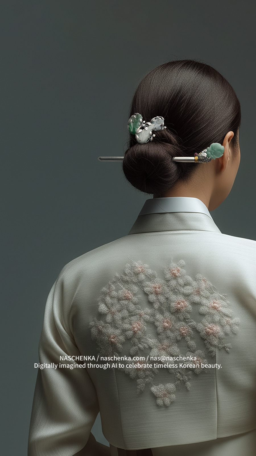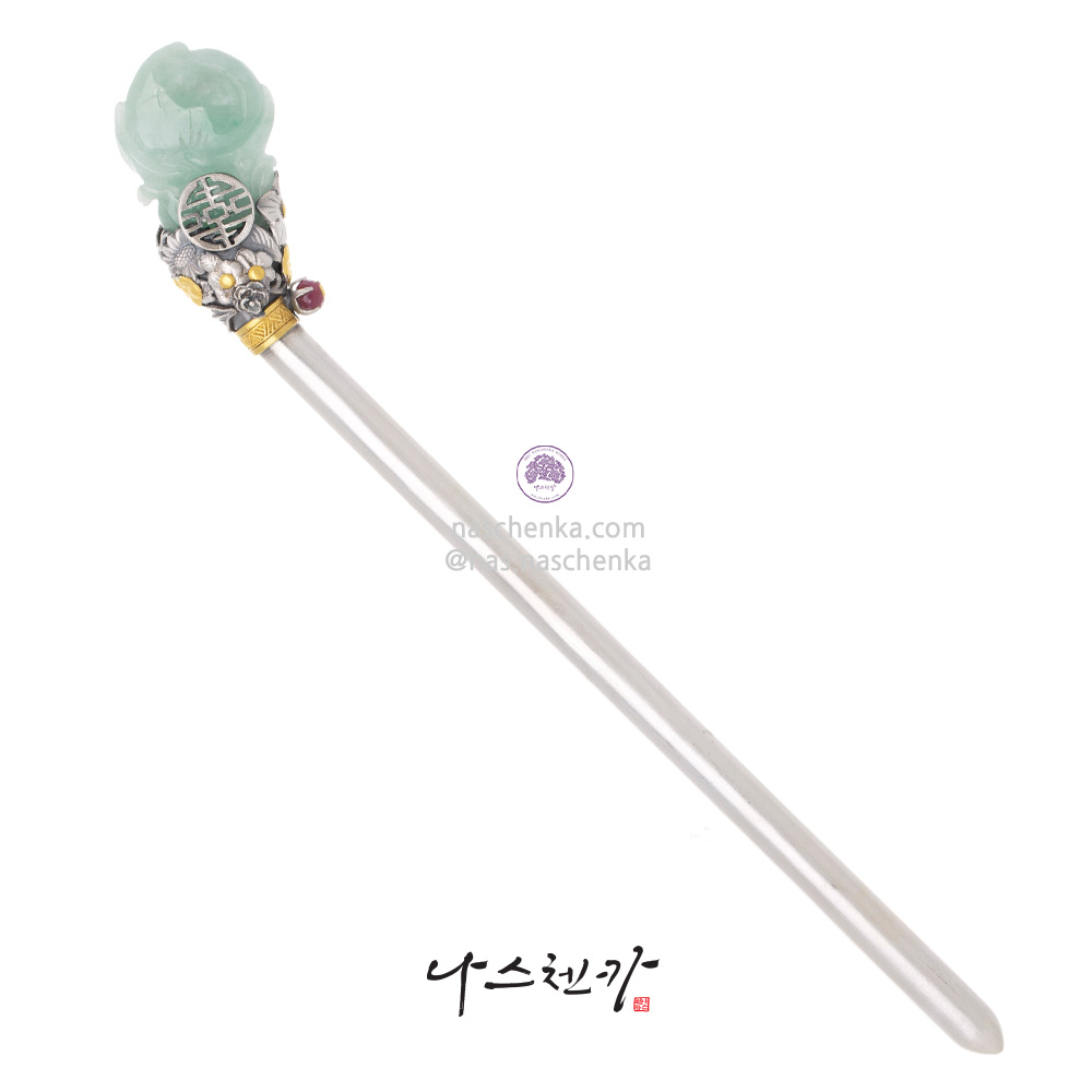 [나스첸카] 비취 옥조각 꽃문양 은세공 비녀 2 [Jade Flower Silver Hairpin Binyeo]