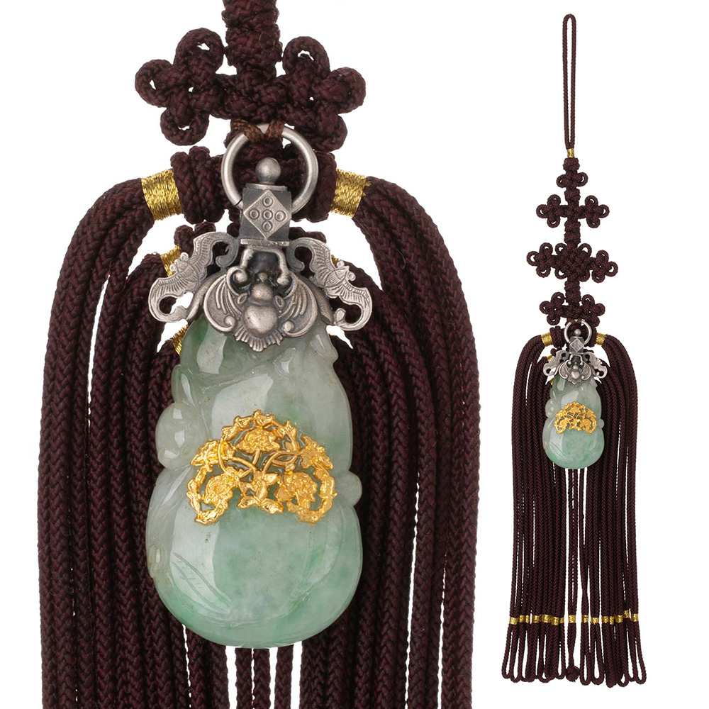 [나스첸카] 재운발복 천연 비취 모란 구중궁궐 박쥐문 은 세공 명주 자주 낙지발 노리개