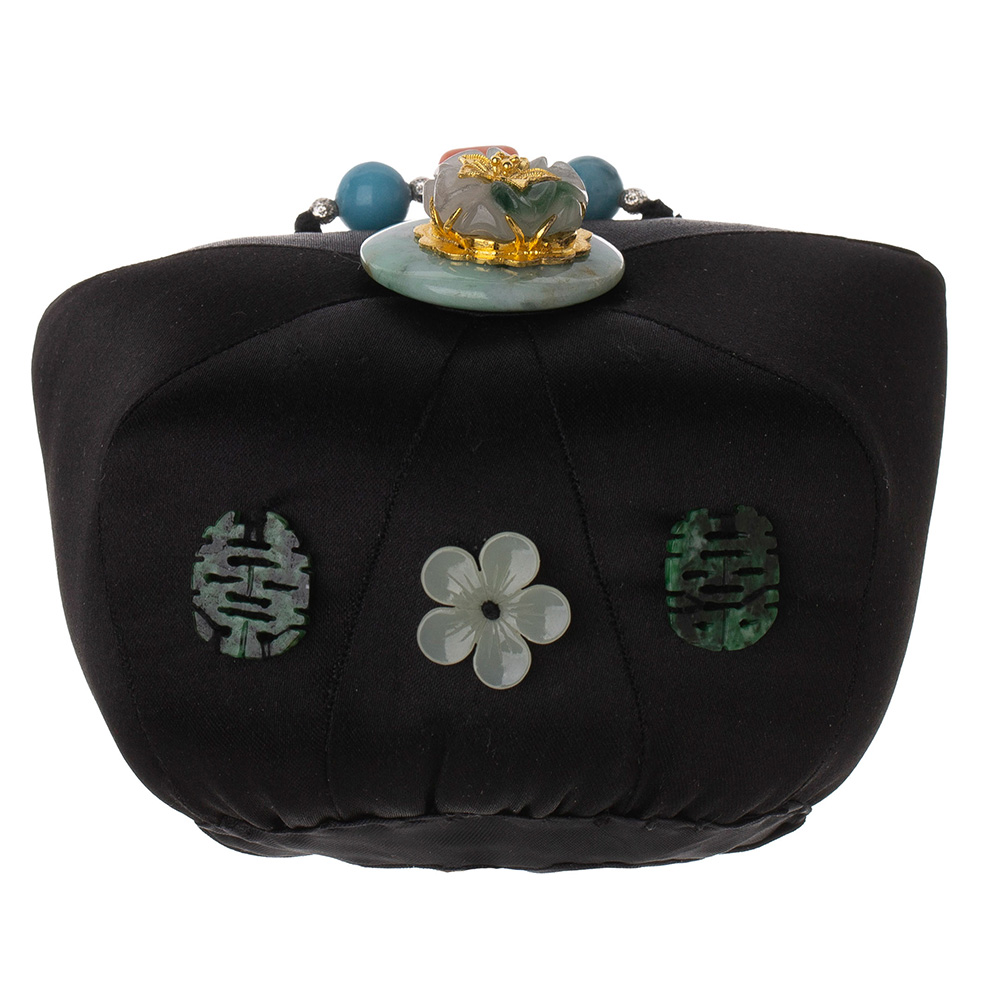 좌우 장식: 천연 비취 ‘기쁠 희(喜)’ 조각