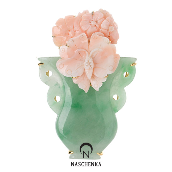 [나스첸카] 얼싸안고 _ jade 비취 브로치 산호 브로치