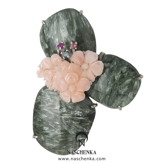 천연 산호와 세라프나이트 라는 카키빛의 원석입니다.