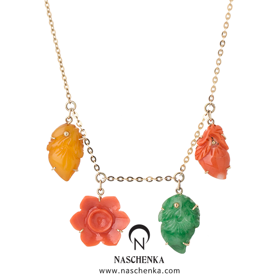 [나스첸카] 또렷하게 _ 14K 비취 산호 호박 목걸이 삼작 목걸이