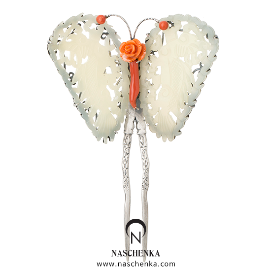 깨끗한 옥조각이 나비의 날개를 장식하고