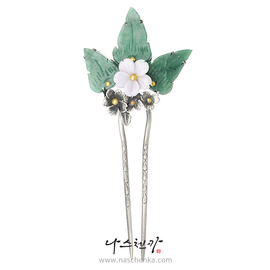 [나스첸카] 내가 좋아하는 나스 _ 옥 콩크쉘 비취 뒤꽂이 꽃 옆꽂이 비녀 올림머리비녀 쪽진머리비녀