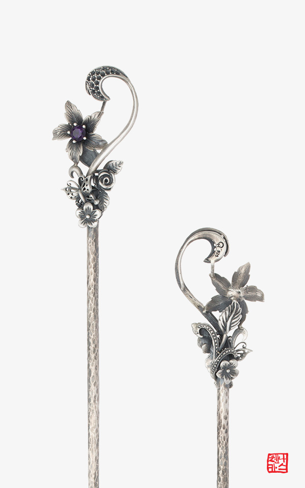 [나스첸카] 보라바람 _ 자수정비녀 은비녀 소비녀