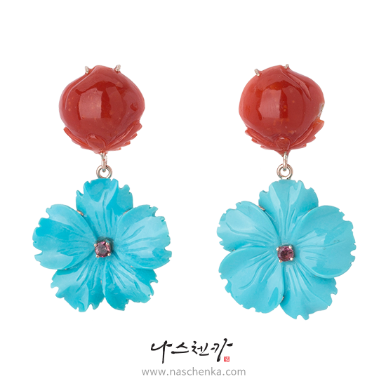 [나스첸카] 여름의 길목에서 _ 14K 산호 터키석 귀걸이