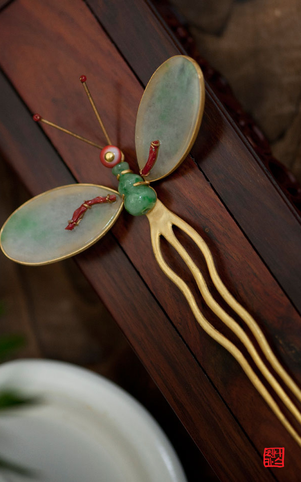 금부 기법, 실버 수공예 나스첸카 공방 셋팅, 산호를 재현한 붉은 염색합성석 (보조석)