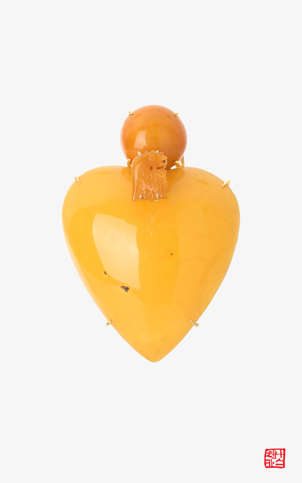 천연 호박, 전체 은(silver 925) 핸드메이드 공예작품 세공 후 도금