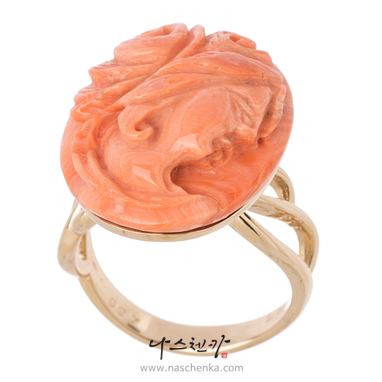 [나스첸카] 14K 카메오 산호 반지