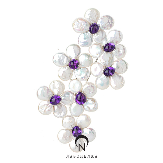 진주, 자수정, 은 나스첸카 핸드메이드 셋팅