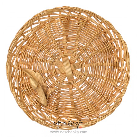 소쿠리 위에 놓인 나뭇잎 사이로 길쭉한 꽃대를 꽂을 수 있도록