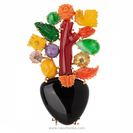 산호, 호박, 비취, 토르마린, 채로아이트로 이루어진