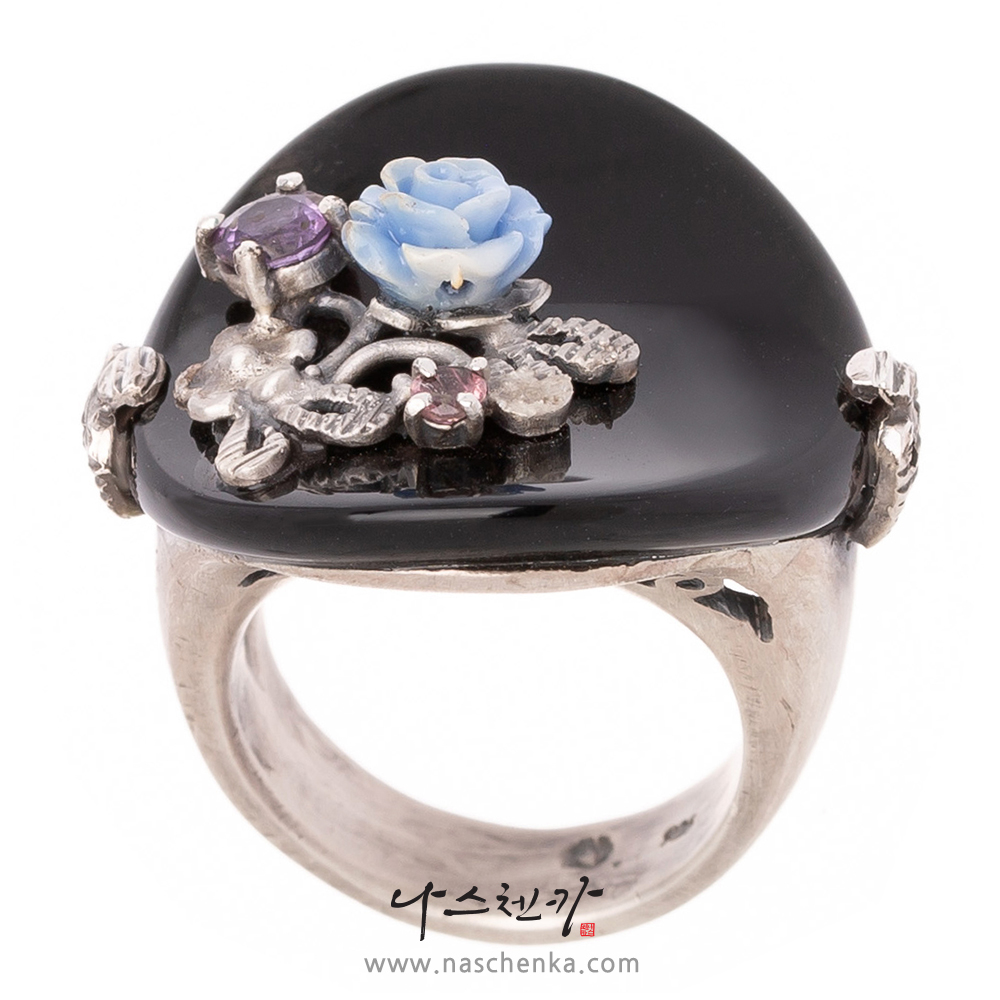 오닉스 반지 원석 반지 한복 가락지 은 가락지 깊은 밤 윤슬 나스첸카