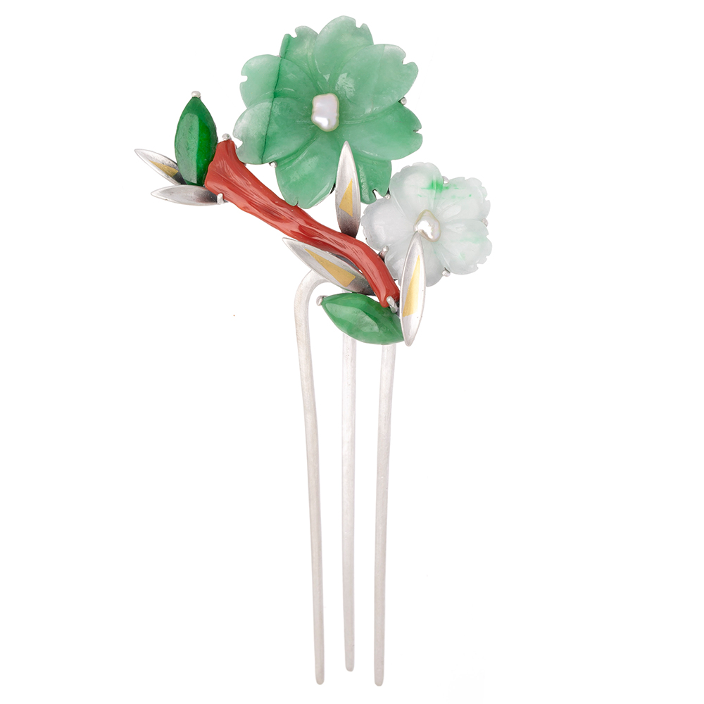[나스첸카] 조용한 럭셔리 _ 은 비취 산호 뒤꽂이