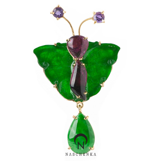 [나스첸카] 비취라는 보석 나비 [실버 수공예 비취 브로치]