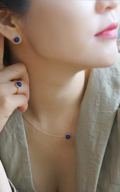 전체 14K 자체 핑크 골드 셋팅에 천연 청금석(라피즈 라줄리) 입니다.