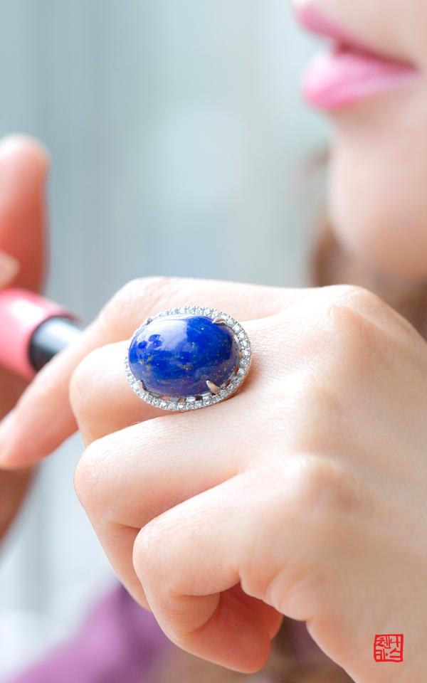 청금석, 은 나스첸카 핸드메이드 셋팅 (화이트 도금 마무리)