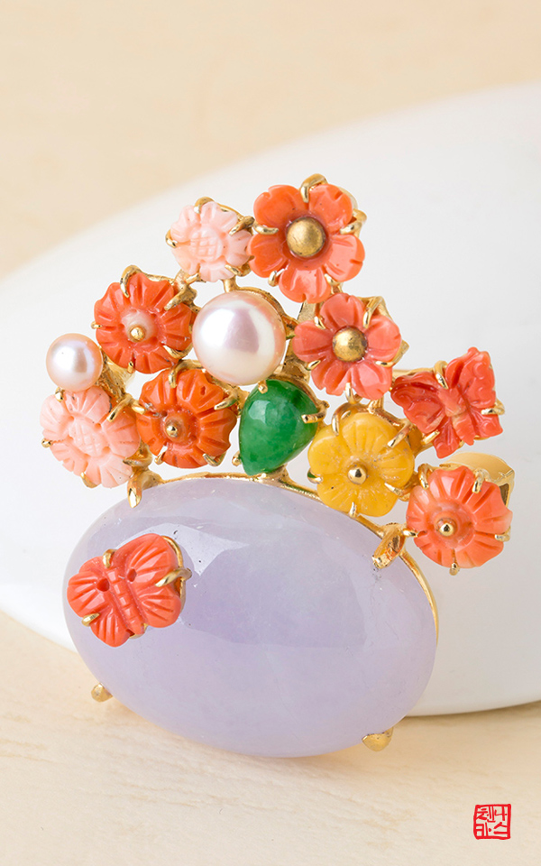 원석은 라벤더비취, 천연산호, 천연호박, 담수진주 이렇습니다.