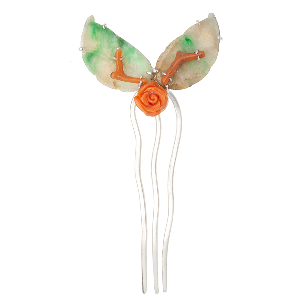 앤틱 비취 산호 은 뒤꽂이