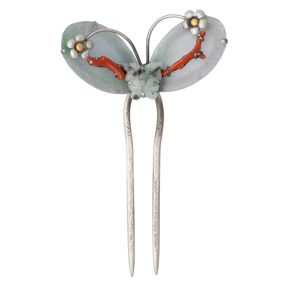 [나스첸카] 한복 전통 장신구 _ 날아가기전까지 나비는 꽃이었다_ _ 비취 산호 뒤꽂이 은공예 작품