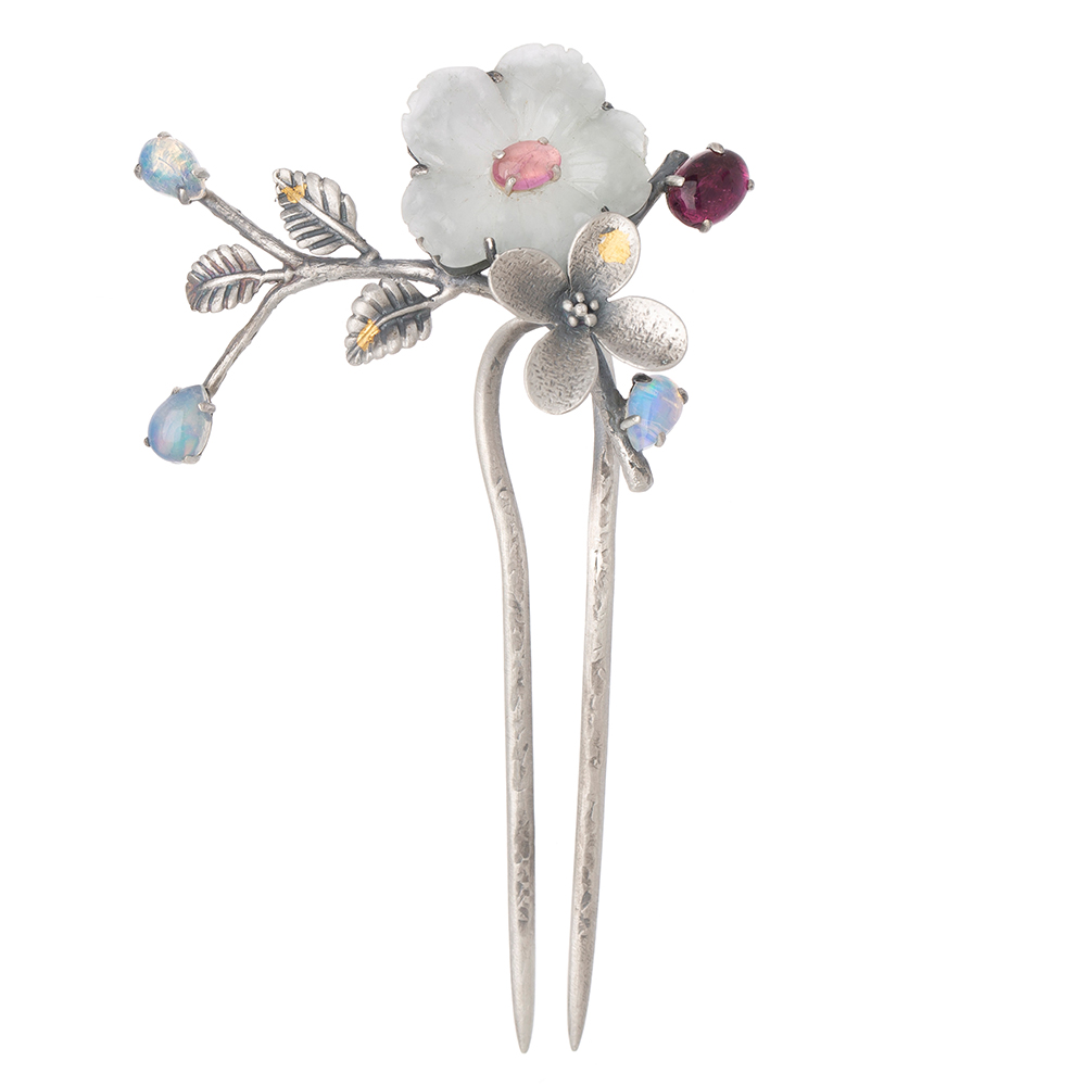 전통 한복 장신구 [나스첸카] 미모에 밝아지는 _ 비취 토르마린 오팔 은 뒤꽂이