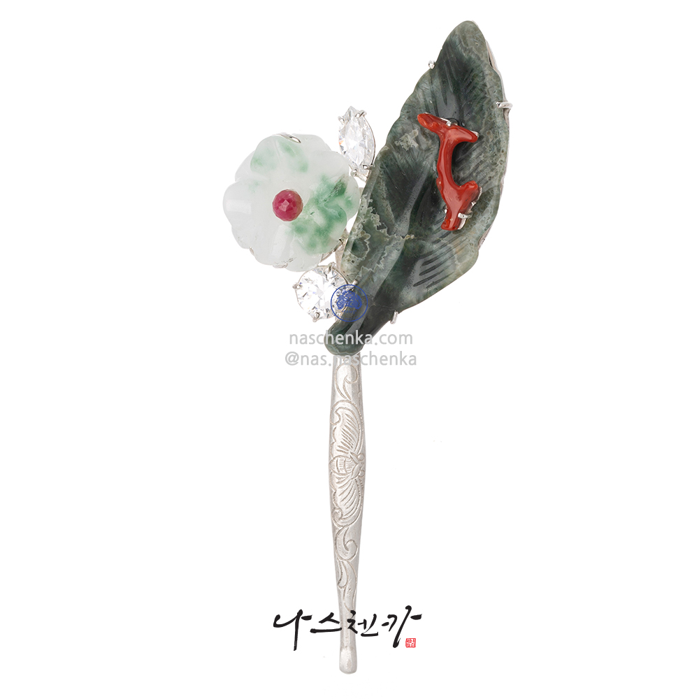 한복장신구 [나스첸카] 미모 과시 3 _ 비취 산호 은 뒤꽂이 hanbok dwikkoji