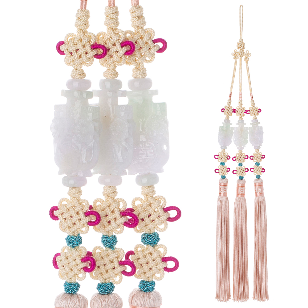 명주실로 제작하는 나스첸카 비취 노리개는 삼작으로 다채로운 명주실 비단 전통매듭으로 제작합니다.
