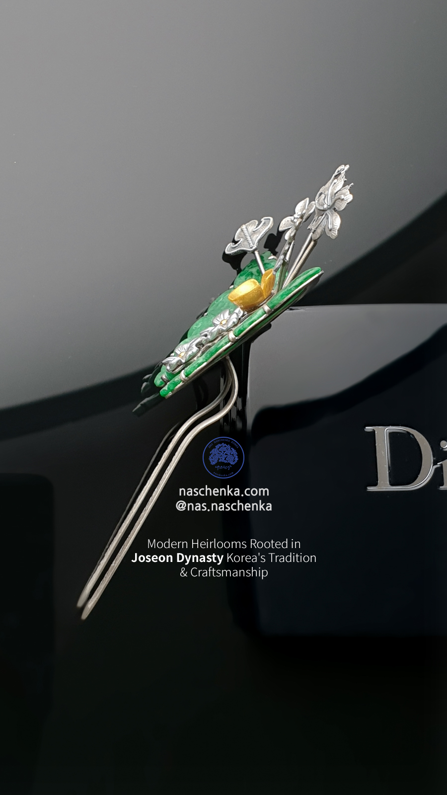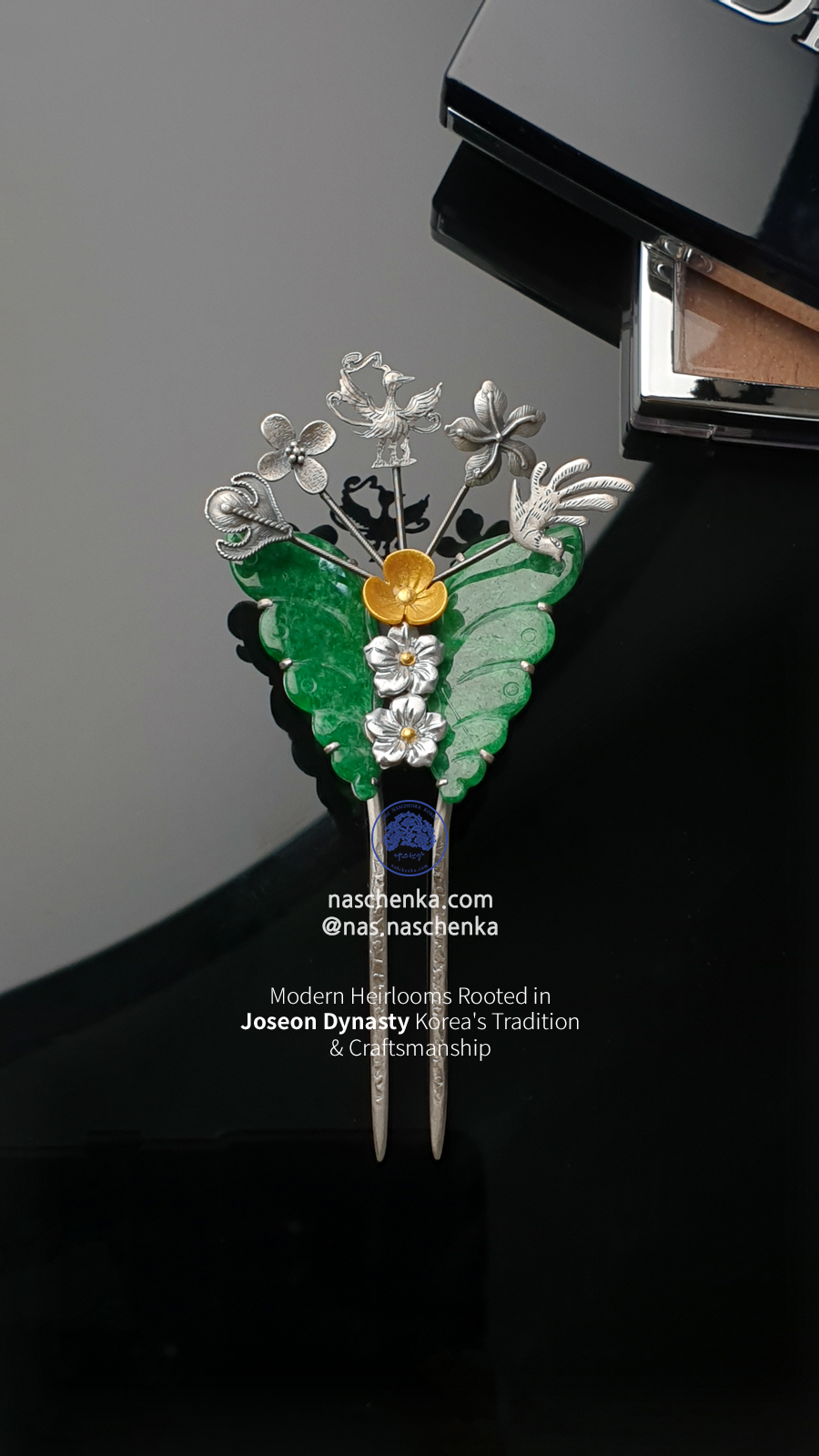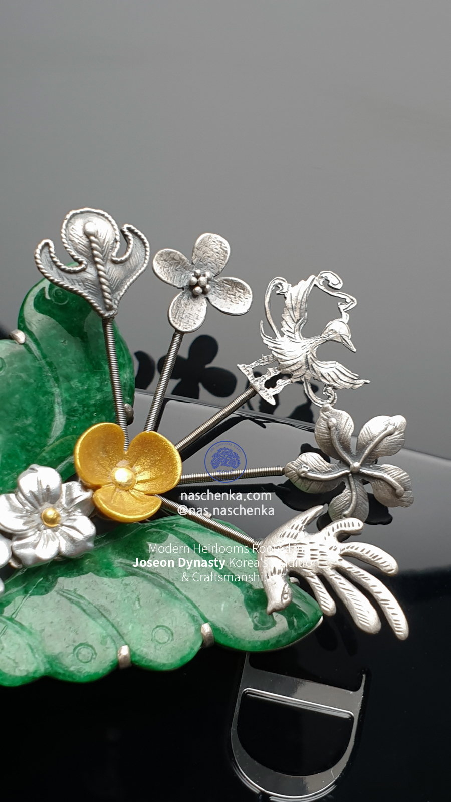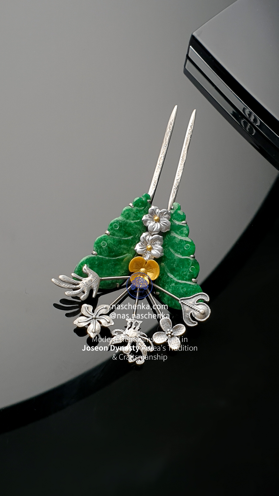 보자마자 사랑에 빠지는 파르라니 떨림도 세공도 모든것이 아름다은 비취 은 뒤꽂이