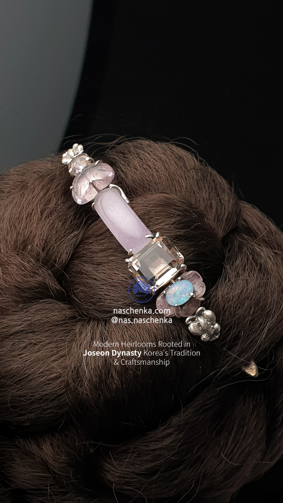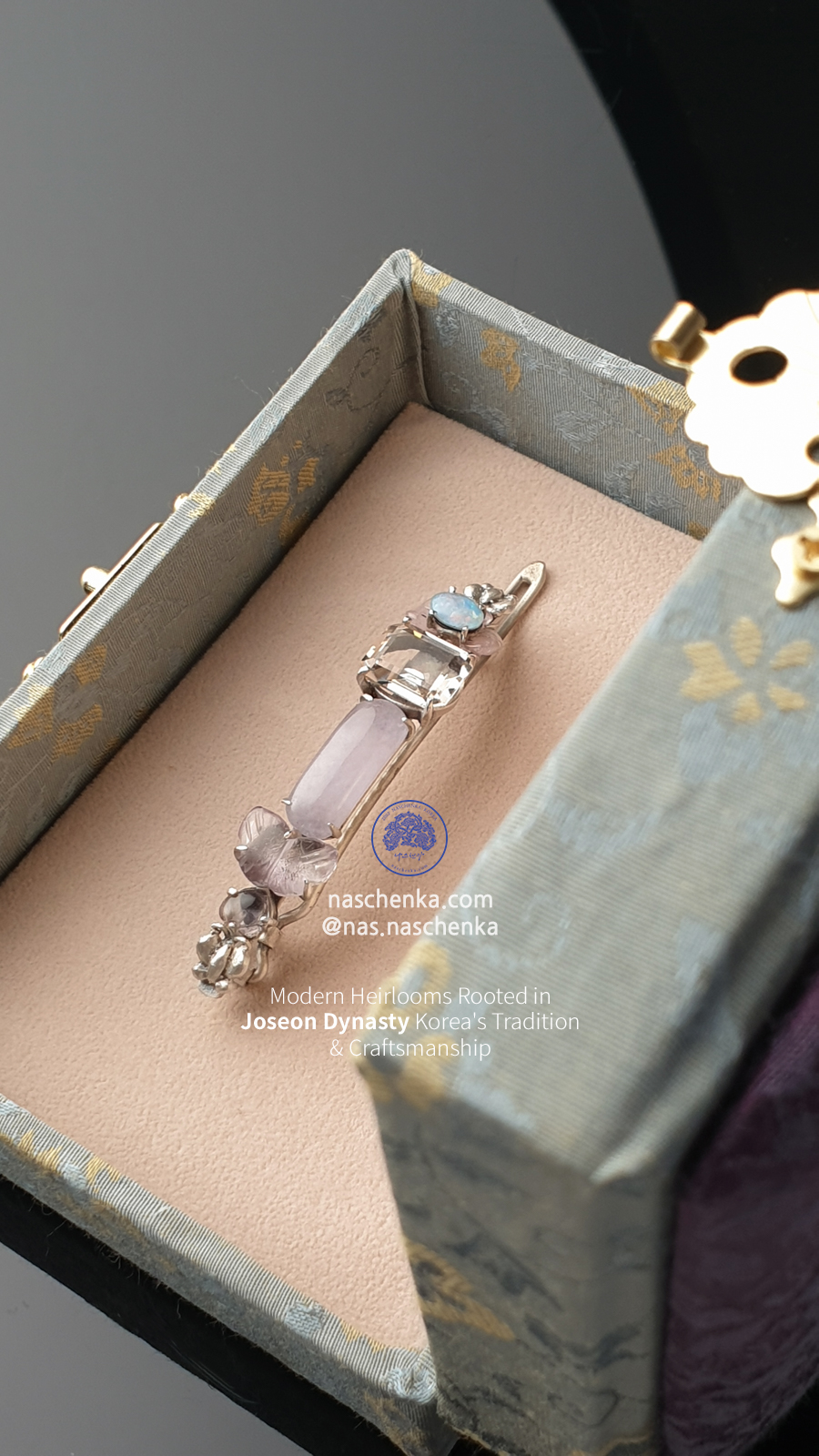 그 위에는 은은한 광채를 띠는 오팔 원석이 포인트로 얹혀 있어,