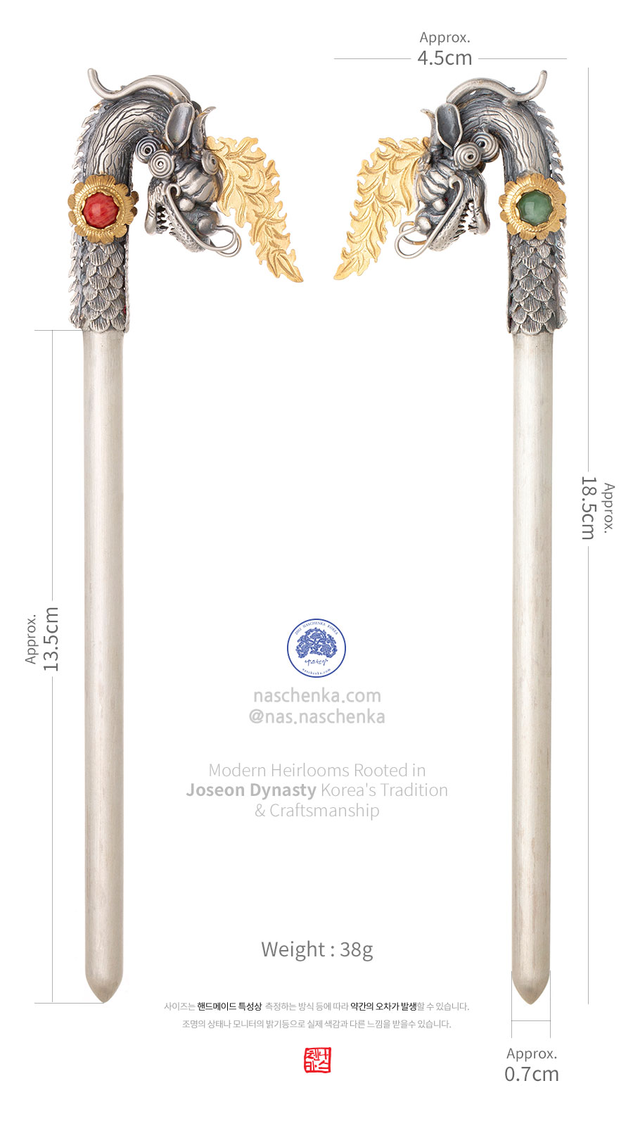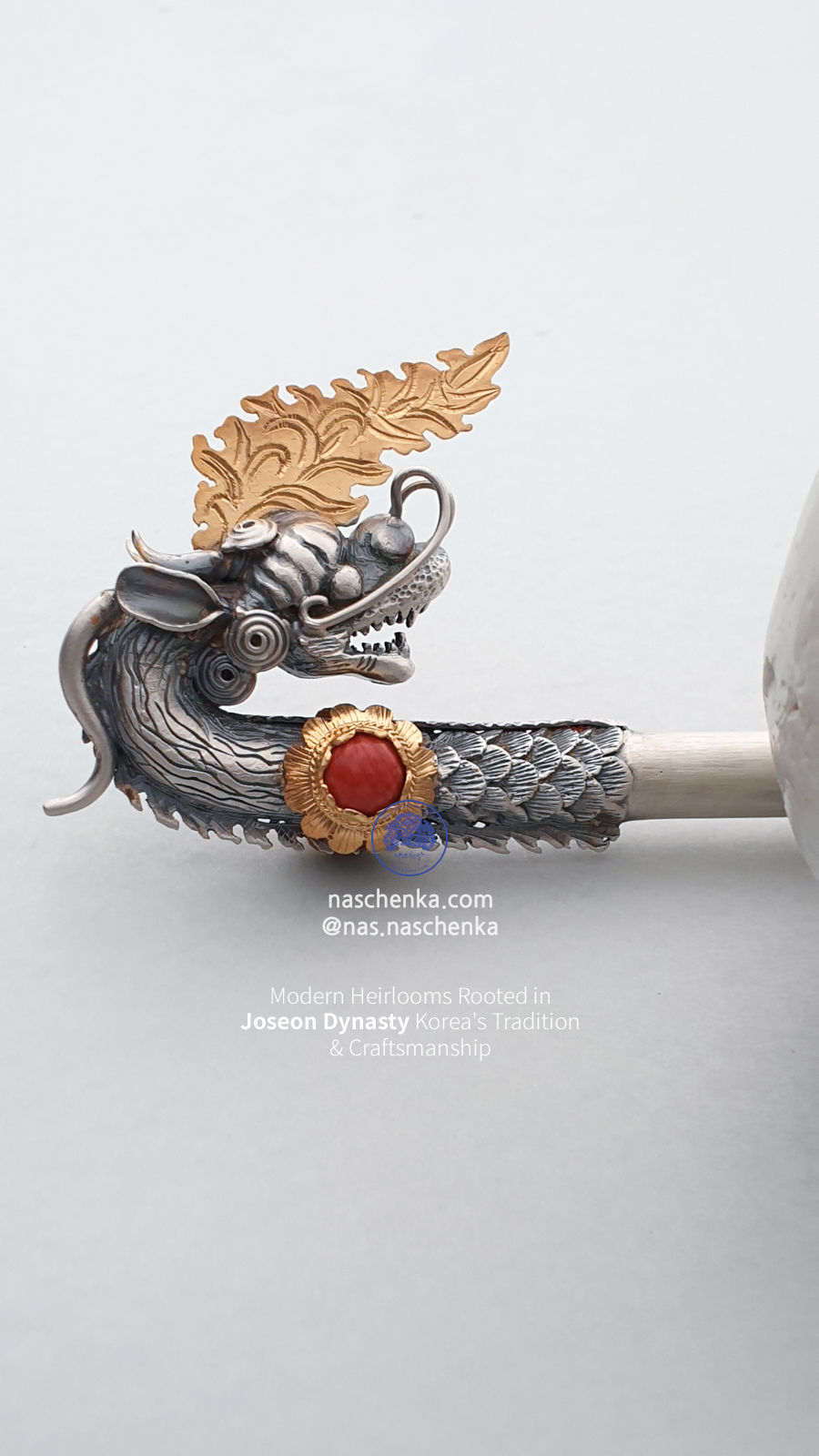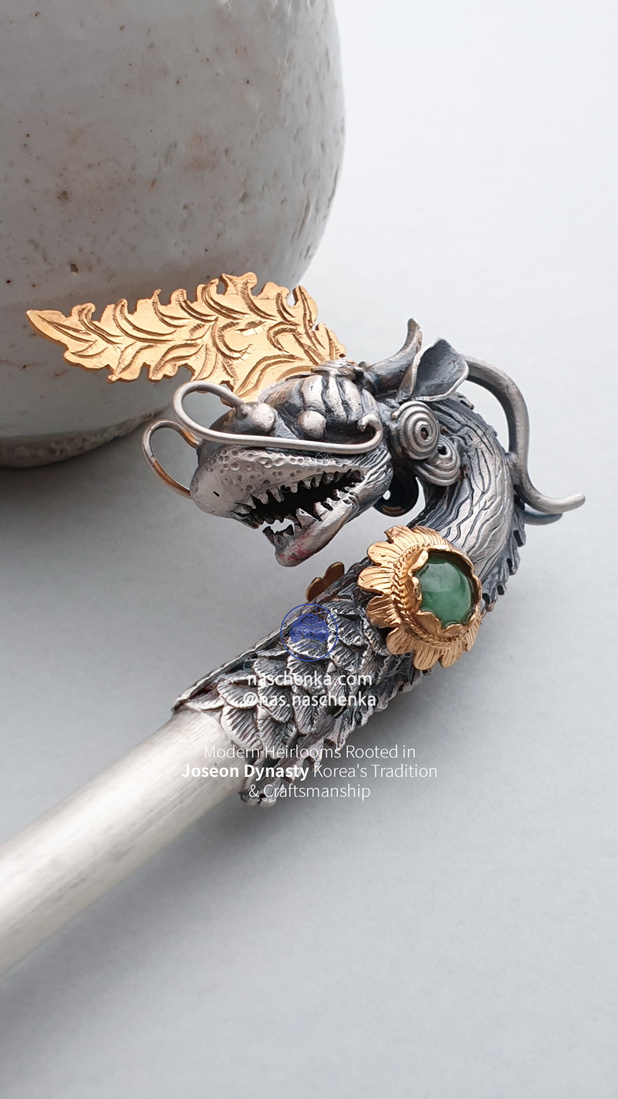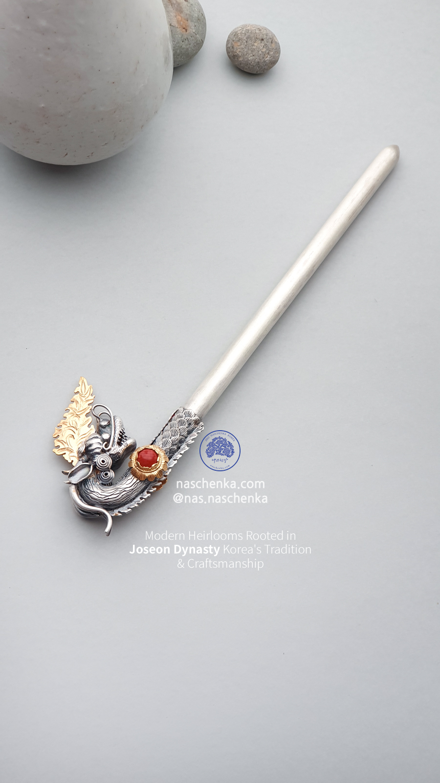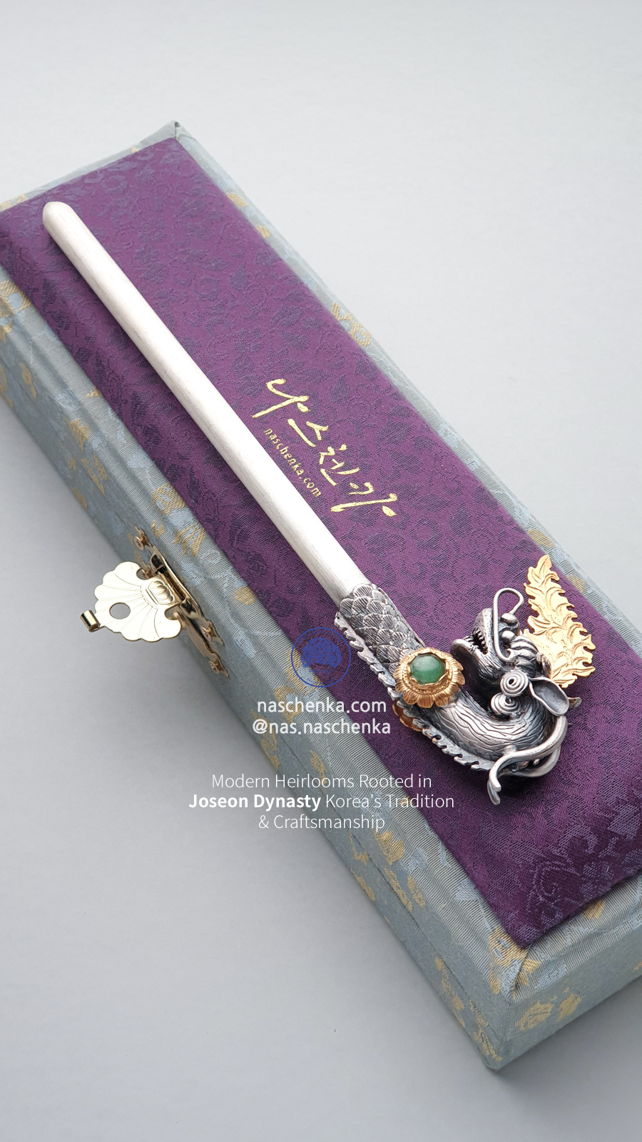 나스첸카만의 세밀한 조각과 전통 기법으로 제작된 진짜 전통 ‘용비녀’입니다.