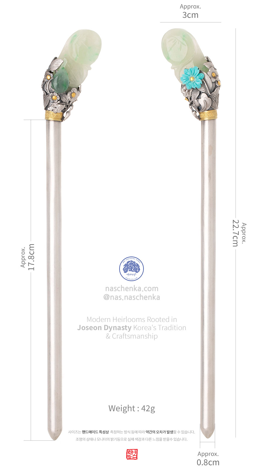 [나스첸카] 내 비녀는 내가 챙긴다 _ 은비녀 입문용 비취 옥 Binyeo