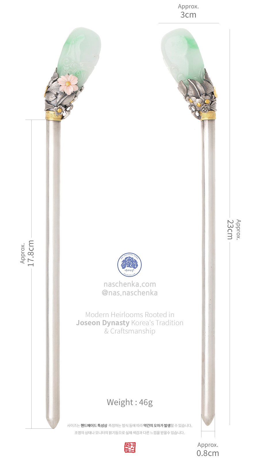 [나스첸카] 내 비녀는 내가 챙긴다 _ 은비녀 입문용 비취 옥 Binyeo