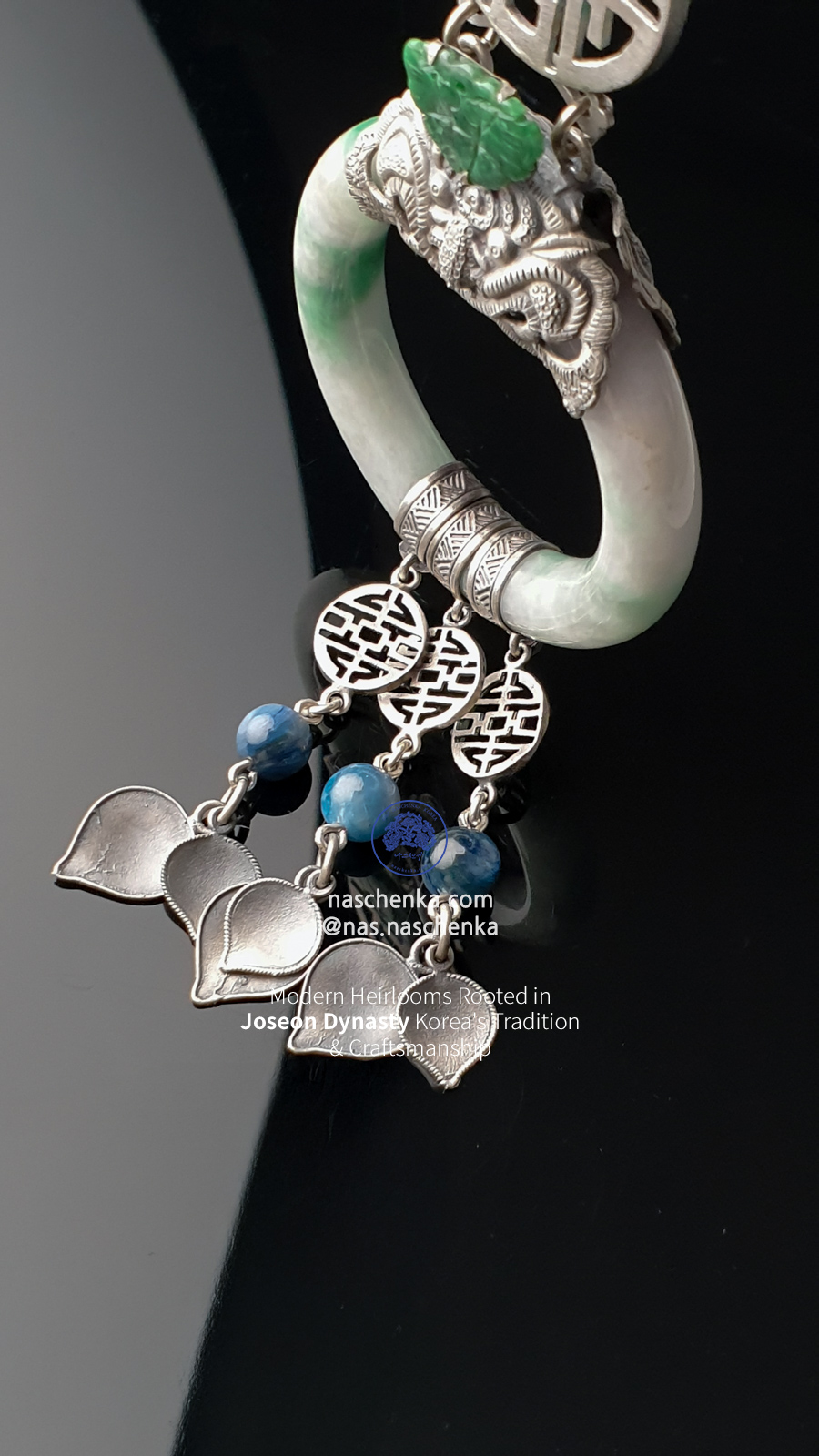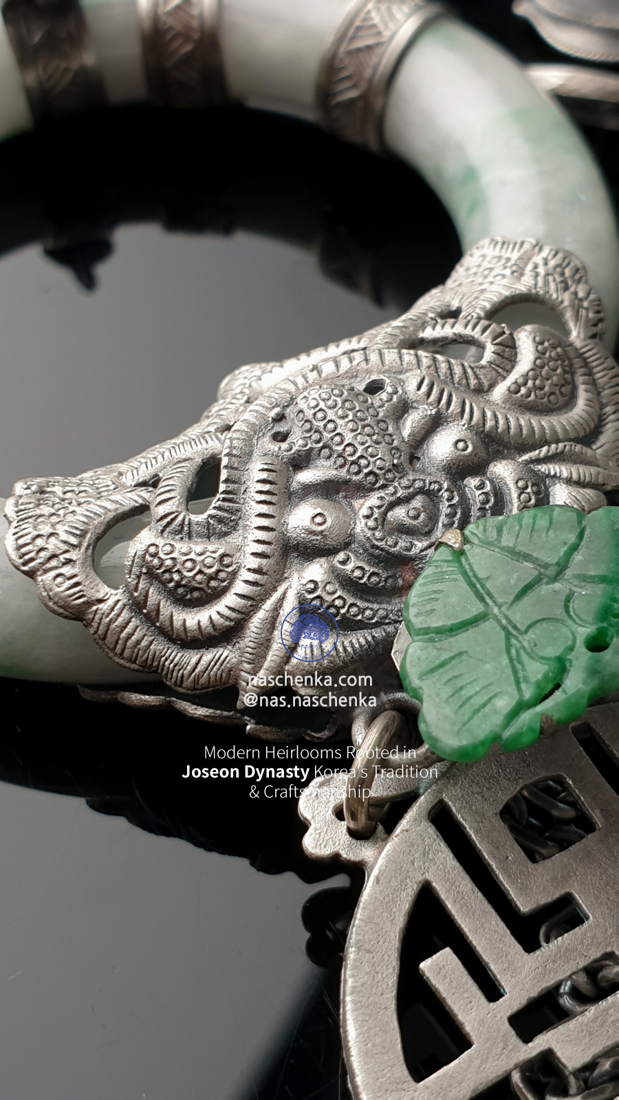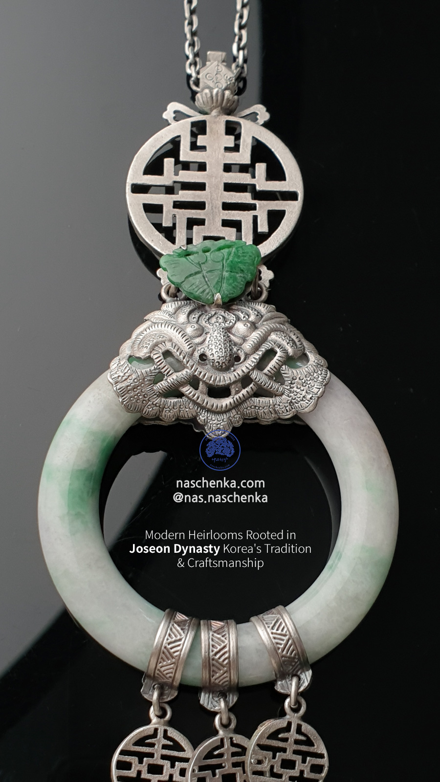 이 작품은 전통 노리개, 팬던트, 가방 참 등 다양한 방식으로 활용할 수 있는 다목적 하이엔드 장신구입니다.