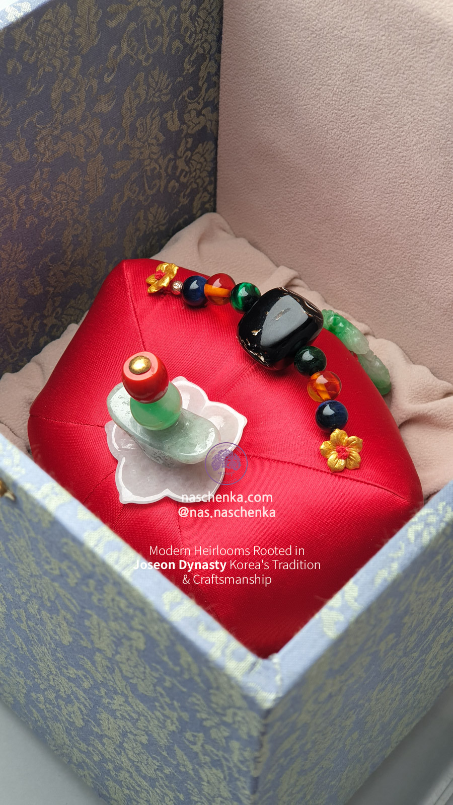 Under the vision of Kim Sung Eun — founder, creator, and owner-director — 나스첸카의 뜻 나스첸카(NASCHENKA)는 김성은 대표의 어린 시절을 함께한 특별한 예명입니다. 어릴 적 그녀의 일기장 속에 살며 일상 속에 스며든 이 이름은 단순한 애칭을 넘어 그녀의 꿈과 열정이 담긴 비밀 친구였습니다. 시간이 흘러, 이 소중한 이름은 그녀의 예술적 열정과 한국 전통을 현대적으로 재해석한 디자인 철학을 담아 나스첸카 (www.NASCHENKA.com) 브랜드의 상징이 되었습니다. 브랜드를 시작하며 정식으로 상표 등록된 나스첸카는 이제 세상에 나스첸카는 대한민국의 전통 공예 기술을 지켜내는 회사입니다. 사라져가는 가장 한국적인 쥬얼리를 지금도 오롯이 장인분들의 손으로 제작하며 시대를 역행하고 있습니다. 대한민국의 전통 공예를 사수해 나가는 과정에 따뜻한 이해와 응원 부탁드립니다. 진짜 전통은 내일이면 더 비싸지거나, 사라집니다.