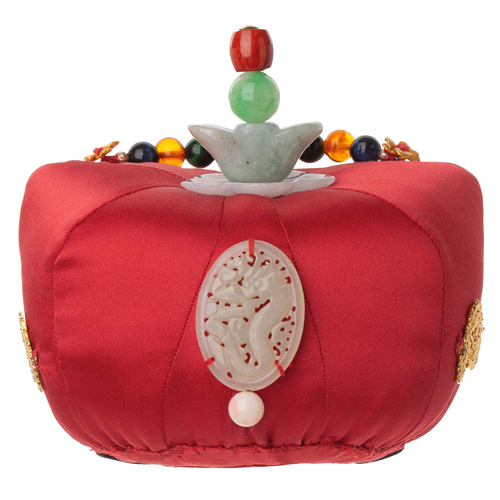 NASCHENKA 홍 족두리는 깊이 있는 진홍색 원단 위에