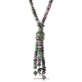 팬던트 부분의 카키색 종모양 원석은 천연 비취,