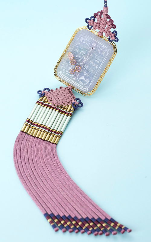 라벤더 비취 노리개, (앞면 뒷면 모두 연출하실 수 있도록 디자인 함) 의 자연스러운 색감 먹음 있으나