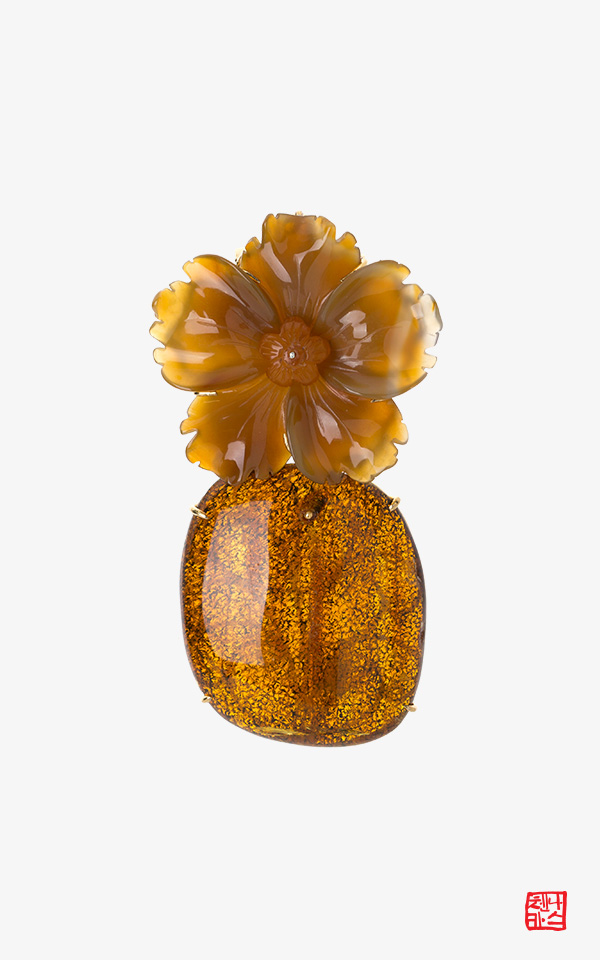 꽃은 아게이트 칼세도니아 종입니다. 칼세도니아 with Quartz , 정중앙 꽃은 역시 천연 호박