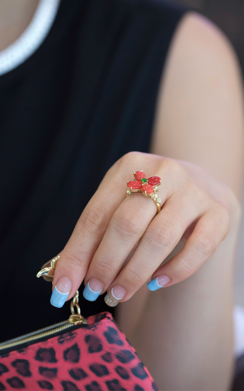 격조있는 꽃반지를 위해 전체 천연 산호에